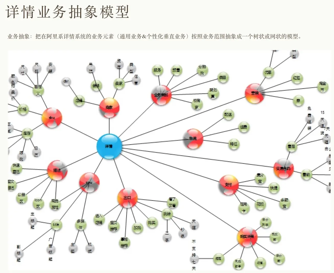 淘宝系统的详情主要包括:淘宝详情、天猫详情、村淘详情、阿里旅行详情、聚划算详情、闲鱼详情、拍卖详情、秒杀详情等渠道。按业务划分主要可以分为:通用业务和个性化业务。比如SKU、商品属性、商品详情描述等业务是每一个详情都需要的基本通用业务,针对不同的行业又有一些特定的业务,比如:分期购、拍卖、旅游、虚拟商品等