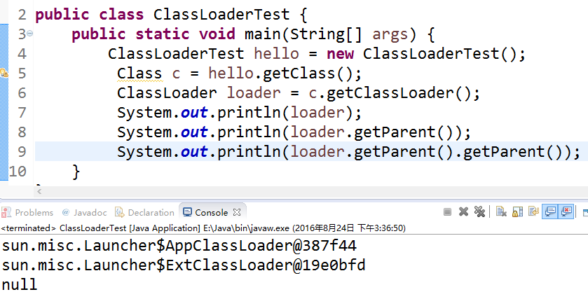 从运行结果可以看出加载器之间的父子关系,ExtClassLoader的父Loader返回了 null