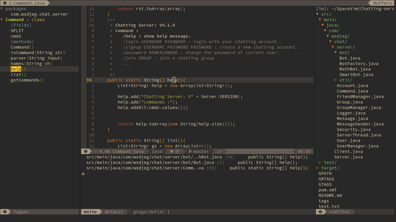 SpaceVim 是一个社区驱动的模块化 vim/neovim 配置集合,其中包含了多种功能模块,并且针对 neovim 做了功能优化。spacevim 有多种功能模块可供用户选择,针对不同语言选择特定的模块,就可以配置出一个适合特定语言开发的环境。