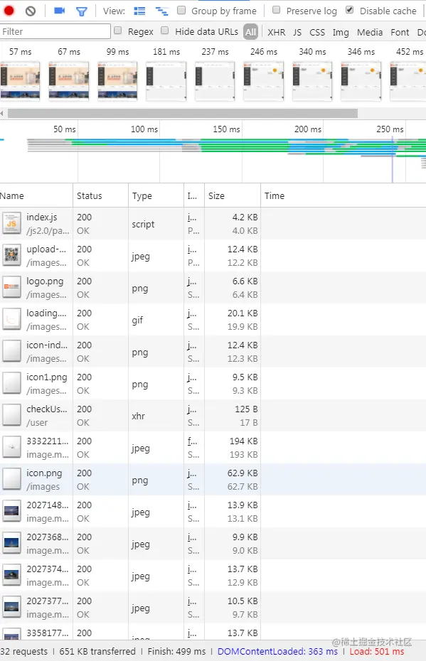 本胖对我们商城首页做了一个初步分析。这次的优化首先从关键资源字节数+关键资源连接数入手,将原来首页首屏的资源由之前的85个请求减少到40个,将原来的首屏资源大小由2.3M减小到800k。最终将domcontentloaded时间减少到平均400ms以及将Load时间减少到平均600ms,初步达到了首页秒开的效果(当然和淘宝天猫还是有很大差距的)。下面本胖就从4个方面来详细记录一下这次的优化步骤,敬以此文,做一个总结。