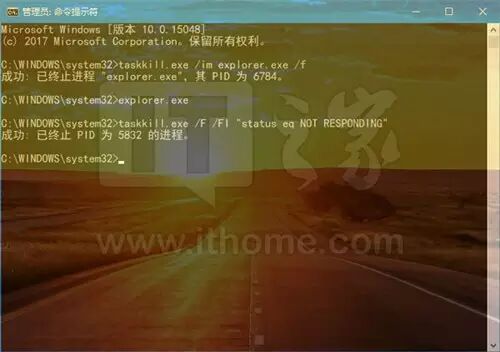 其中taskkill.exe是结束进程的程序,参数/im可以让你输入具体进程名称,explorer.exe是文件资源管理器的程序名(此处为举例),参数/f是强制执行。