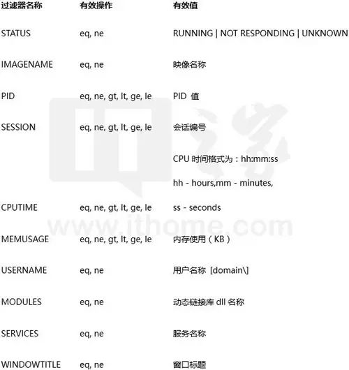 其中参数/FI可让你输入后面的要求,比如该命令中的"status eq NOT RESPONDING"意为“状态 等于 无响应”。
