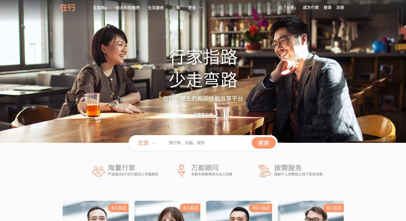 解析:在行,行家指路,少走弯路。在行是果壳网旗下的一款互联网产品,2015年推出,发展迅猛。“在行” 上的行家定价由行家自定,与行家约见价格一般几百元/小时。但有没有用,还是得看人......