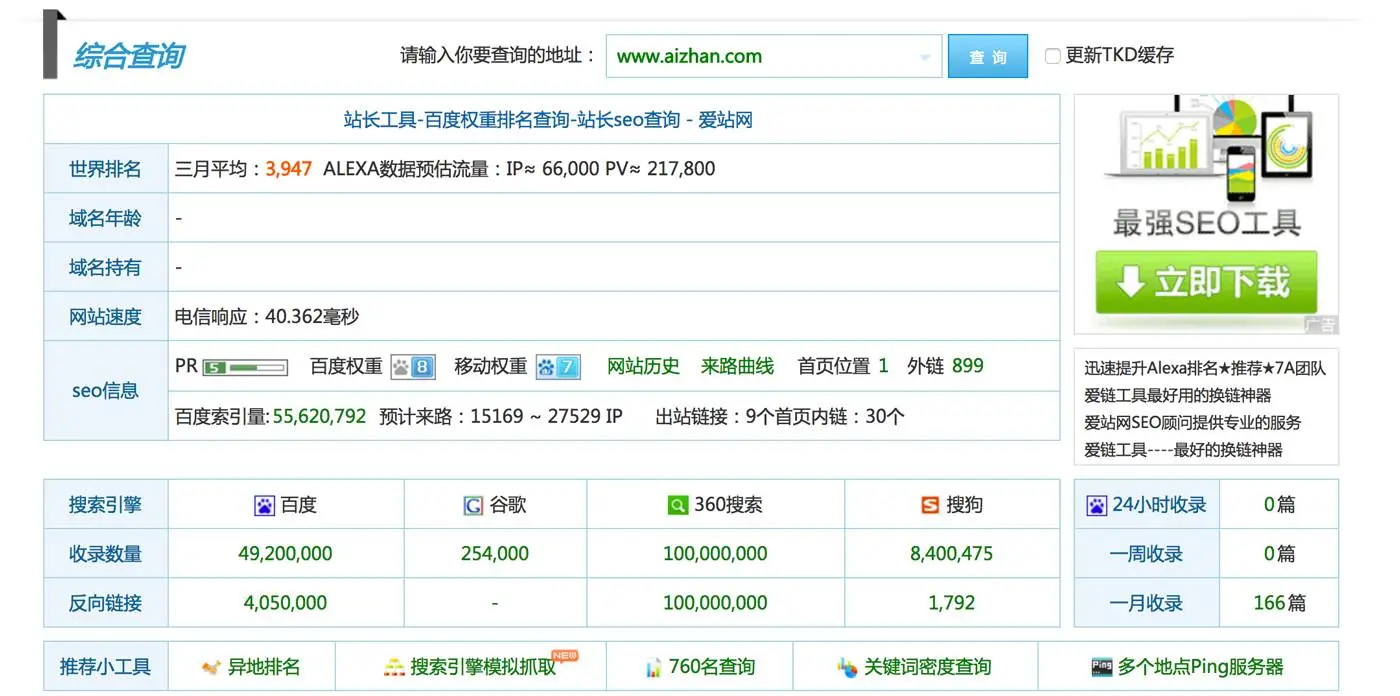 爱站网是国内的一款站长工具,可用作百度权重排名查询。