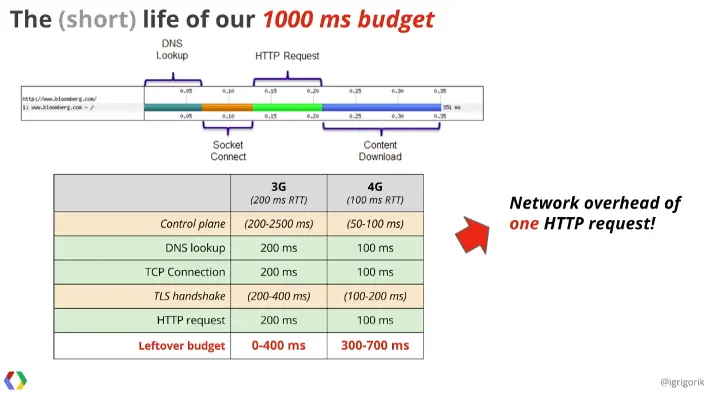 页面加载应该在1000毫秒内完成。在移动设备上,这是一个很难达到的目标,因为它涉及到页面的互动,而不仅仅是在屏幕上渲染和滚动。