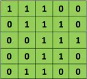 正如我们上面所说,每张图像都可以看作是像素值的矩阵。考虑一下一个 5 x 5 的图像,它的像素值仅为 0 或者 1(注意对于灰度图像而言,像素值的范围是 0 到 255,下面像素值为 0 和 1 的绿色矩阵仅为特例):