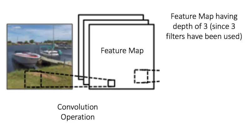 深度(Depth):深度对应的是卷积操作所需的滤波器个数。在下图的网络中,我们使用三个不同的滤波器对原始图像进行卷积操作,这样就可以生成三个不同的特征图。你可以把这三个特征图看作是堆叠的 2d 矩阵,那么,特征图的「深度」就是 3。
