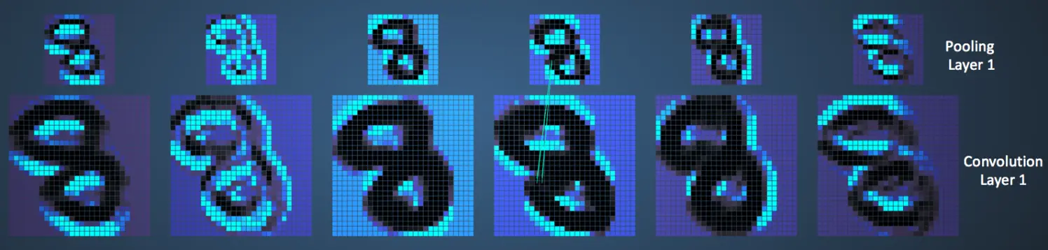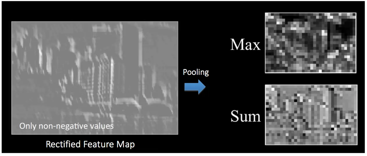 下图展示了我们在 ReLU 操作之后得到的修正特征图的池化操作的效果: