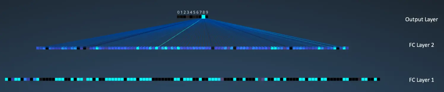 从全连接层得到的输出概率和为 1。这个可以在输出层使用 softmax 作为激活函数进行保证。softmax 函数输入一个任意大于 0 值的矢量,并把它们转换为零一之间的数值矢量,其和为一。