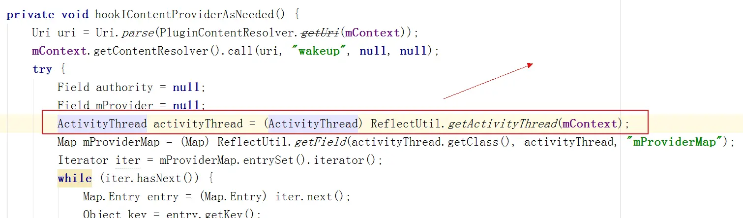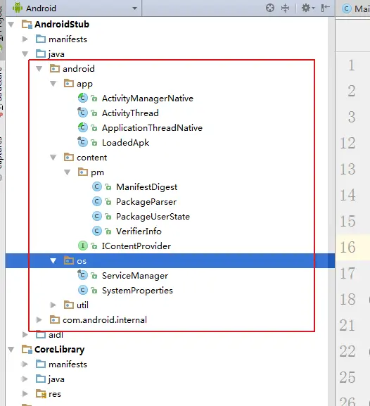 看到这可能很多人就懵逼了,这是啥意思,实际上这里代表的就是这个类执行的时候,会让ROM里的类来实际执行,这里android studio定位到的源码 只是告诉我们,嗯 这里有一个这样的类。但是实际的实现是放在Rom中做的。 很多人到这里可能还是无法理解是什么意思,其实这个地方在很多开源项目中都有实际用法,比如你要反射调用api里没有暴露出来给你的类怎么办呢?这个类在rom里是有的 但是api并没有暴露出来给你。就可以用这种写法了。我举个滴滴开源框架VirtualApk的例子: