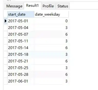 select start_date,weekday(start_date) as date_weekday from db1.str_date;