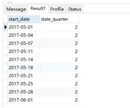 select start_date,quarter(start_date) as date_quarter from db1.str_date;