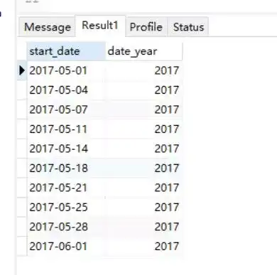 SELECT start_date,substring_index(start_date,'-',1) as date_year from db1.str_date; -- 截取年份