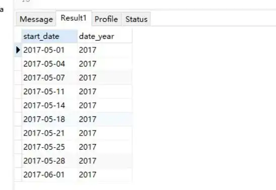 SELECT start_date,substring_index(start_date,'-',-1) as date_year from db1.str_date; -- 截取天