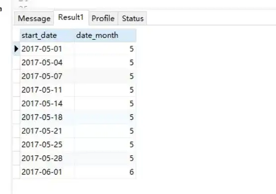 SELECT start_date,substring_index(substring_index(start_date,'-',1),'-',1) as date_month from db1.str_date; -- 截取月份