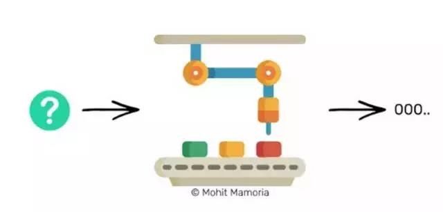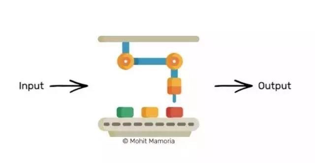 假设我们现在有一个机器,如果你把一个里面装着东西的盒子从左边放进去,这个魔法机器会从右边吐出一个装着其它东西的盒子。