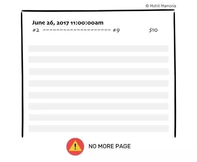 这个过程会持续进行,直到这张纸上的空间不足。假设每张纸只能记录10次交易,那么只要第10次交易完成,每个人纸上的空间也就随之耗尽。