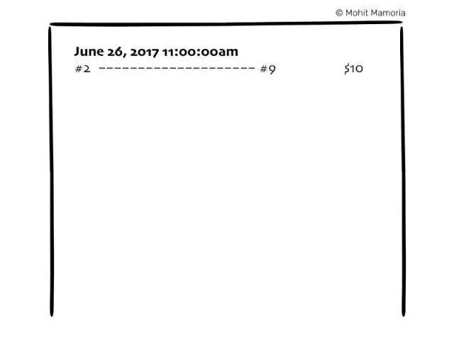 然后每个人都检查确认2号是不是有10美元及以上的余额能够转给9。如2号余额足够,那么大家都在空白纸上记录下这笔交易。