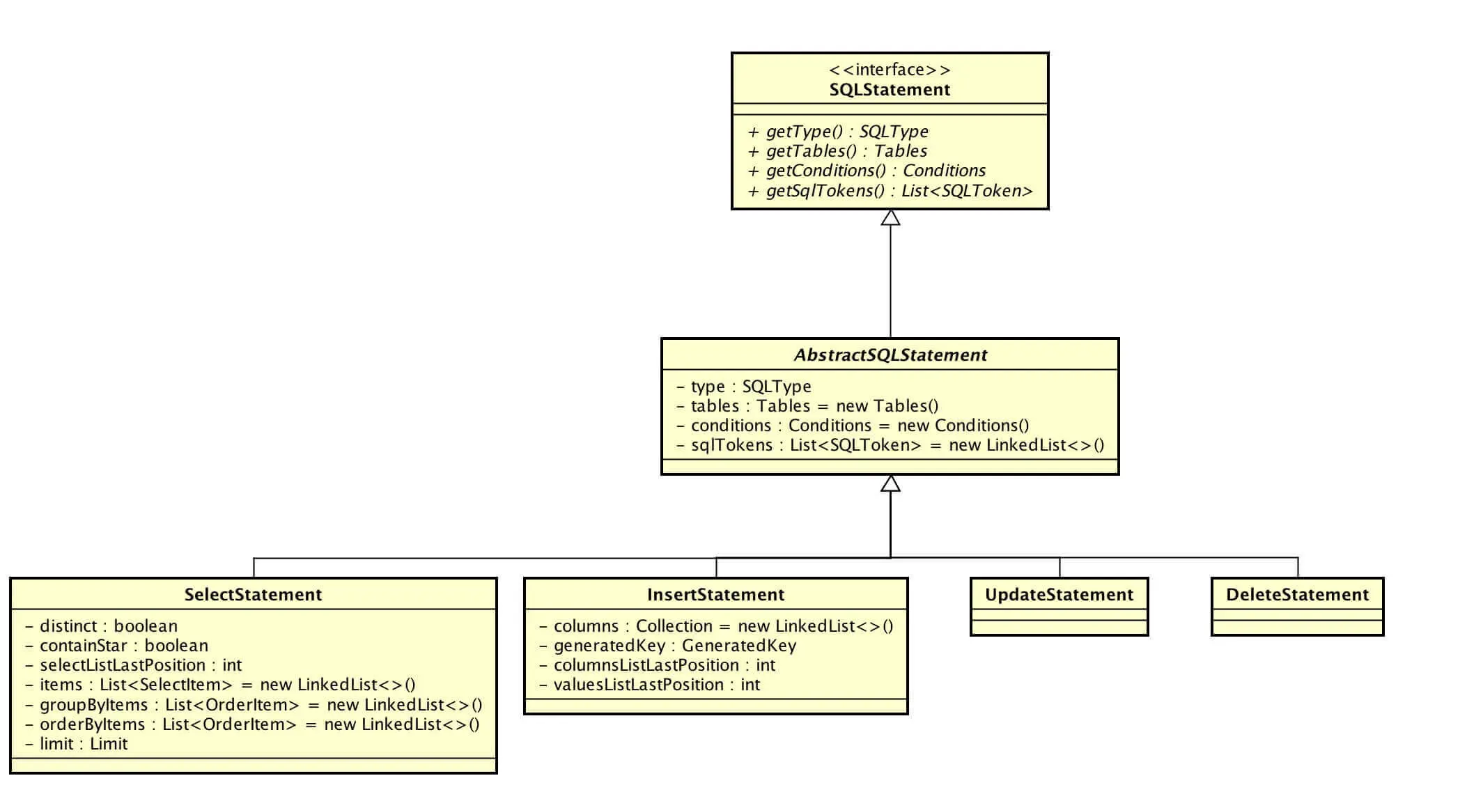 | SelectStatementParser | SelectStatement + AbstractSQLStatement | 《查询SQL解析》 |