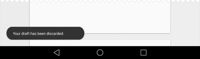 它们会在超时或者用户在屏幕其他地方触摸之后自动消失。用户可以在屏幕其他区域滑动关闭。当它们出现时,不会阻碍用户在屏幕上的输入,并且也不支持输入。屏幕上同时最多只能显示一个 Snackbar。