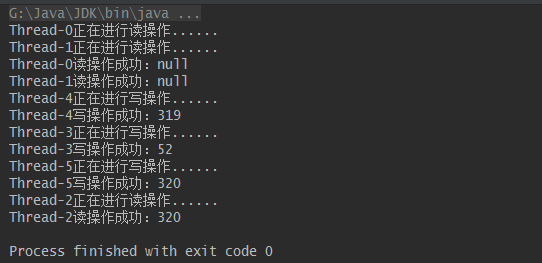 可以看到,读写操作都是互斥执行的。但这种写法存在一个问题,读操作是可以并发进行的,故这样互斥的写法存在计算机资源的浪费的问题。JUC中ReentrantReadWriteLock为了这一痛点应运而生了。