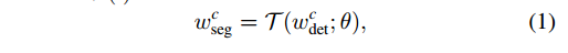图2 如公式1所示,对于某个类别的object detection weights,注意这里的weight和类别相关的,mask weight与其关系由函数T表示,其中θ是要学习的参数。