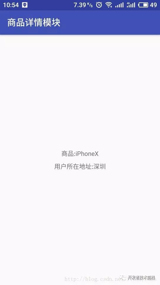 这种面向接口编程的思想非常优秀,只和接口打交道,子类怎么实现不关心,所以通过ARouter的发现服务功能就可以自动找到实现了IUserModuleService接口的子类UserModuleService,调用getUserAddress方法获取到用户的配送地址。所以当我们在商品详情模块中调用这个方法的时候就能轻松的实现获取到用户收货地址的功能: