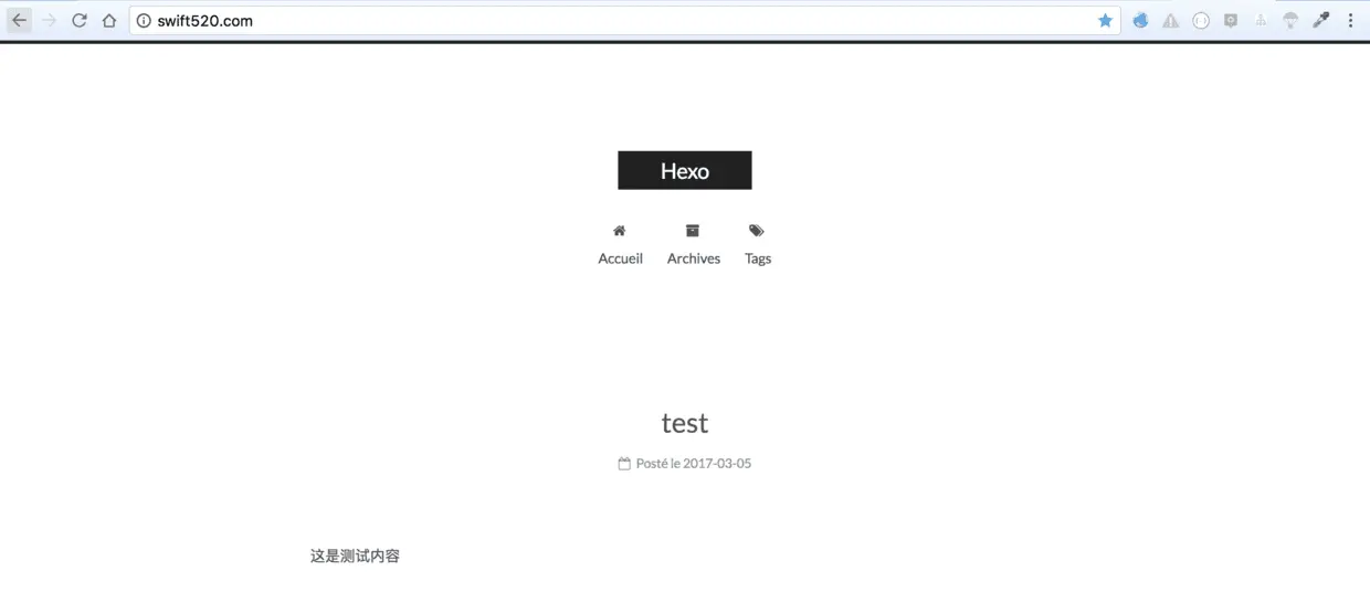 4.然后访问域名, 比如我的, swift520.com, 成功!~
