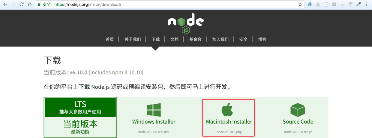 Node.js 可以用很多种方式安装Node.js, 但是为了必免因缺少各种环境而安装失败, 这里推荐直接下载安装包安装. nodejs.org/zh-cn/downl…