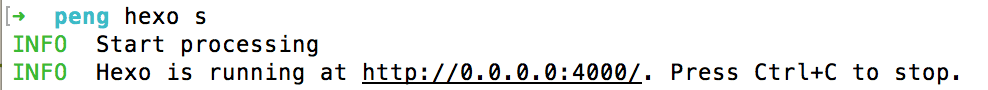 9.对, 就是这么简单, 本地环境搭建成功. 按control + c退出预览.不要关掉终端, 待会所有的操作, 都要在这个叫peng的文件夹中操作
