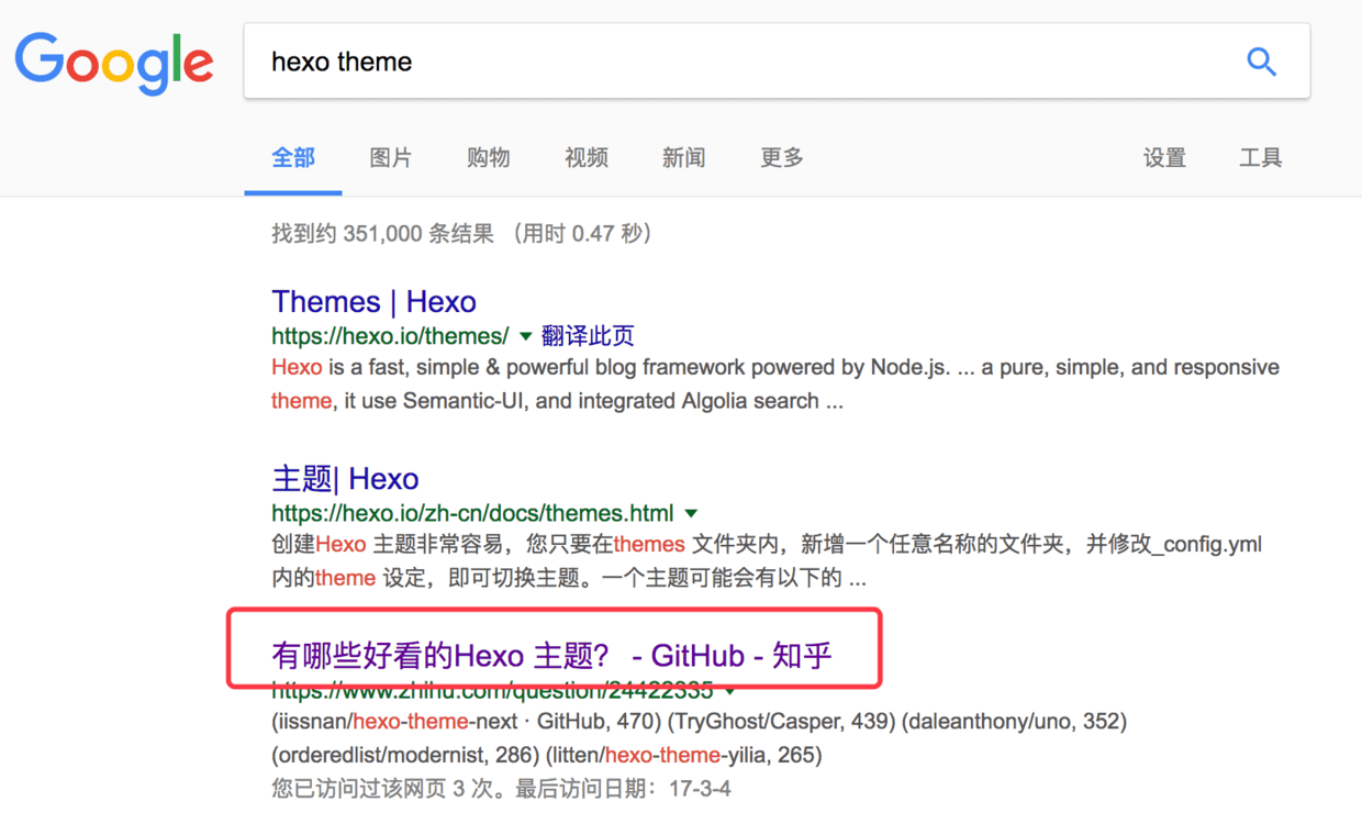 1.在搜索引擎搜索 hexo theme 既可.