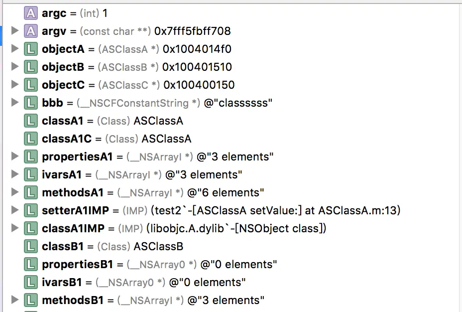 我们通过抓取objectA在被objectB, objectC观察前和观察后的 类的类型,属性列表,变量列表,方法列表,得出:
