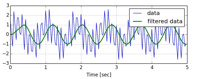 上图中,蓝线是原始的波形,绿线是低通滤波lowpass后的波形。可以看到,绿线的波动比蓝线小很多,非常平滑。