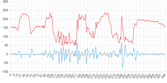 上图中,红线是原始的色彩曲线,蓝线是高通滤波后的曲线。