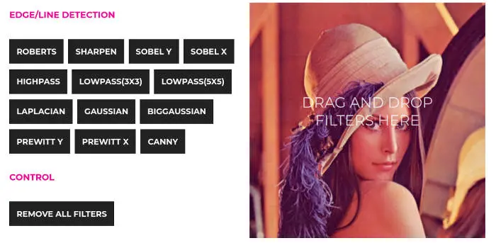下面这个网址,可以将滤波器拖到图像上,产生过滤后的效果。