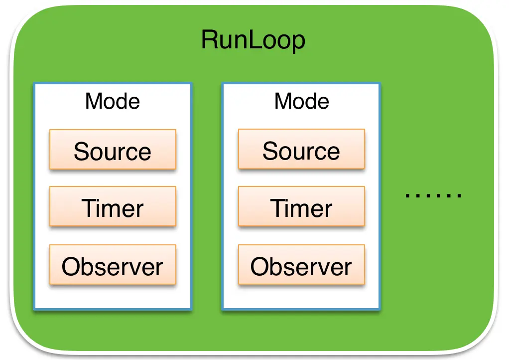 RunLoop可以检测的事件类型一共有3种,分别是CFRunLoopSource、CFRunLoopTimer、CFRunLoopObserver。可以通过CFRunLoopAddSource, CFRunLoopAddTimer或者CFRunLoopAddObserver添加相应的事件类型。