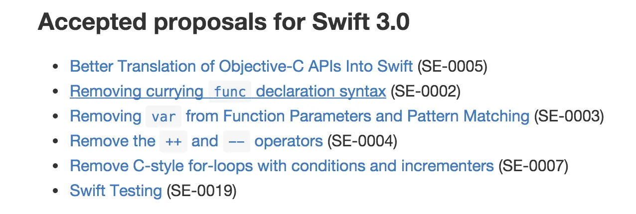 您可以在Swift Programming Language Evolution中查看更多细节:
