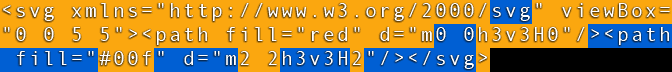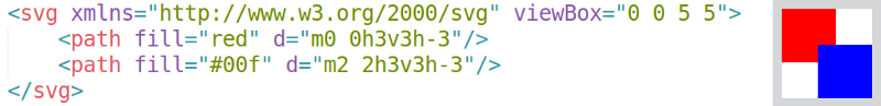 除了 fill 值、m 命令和最后的 H 命令外,第二条路径几乎全部都使用了回退引用。对于 fill 和 m 我们无能为力,因为第二个方块的确有着不同的颜色和位置。