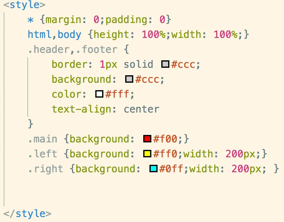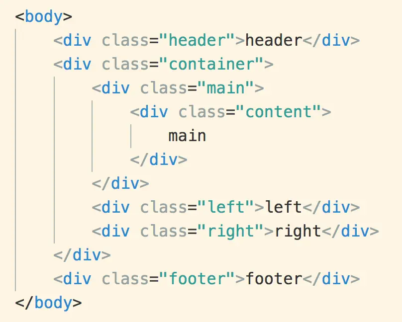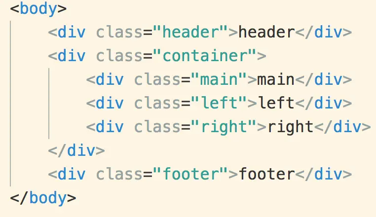 双飞翼布局和圣杯布局的前3步都是一样的,区别在于第四步(解决中间栏不被遮挡的问题),下面看下圣杯布局的实现。
