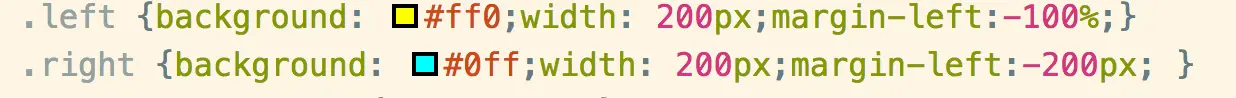 将 main left right 全部左浮动,container 设置overflow:hidden 出发BFC