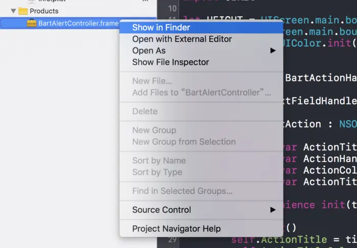 回到工程中,在模拟器进行编译 command+B ,编译完成以后再次在真机上选择编译,编译成功以后show in finder,去文件夹