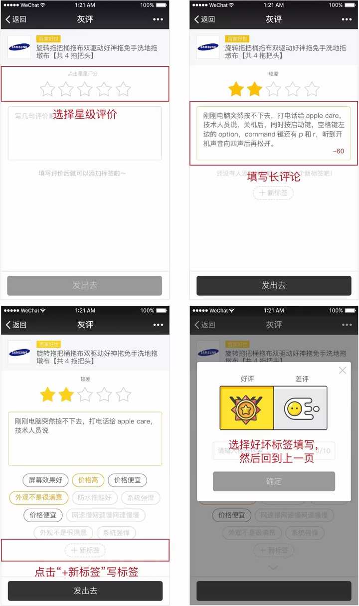 旧版、新版好差评标签展示