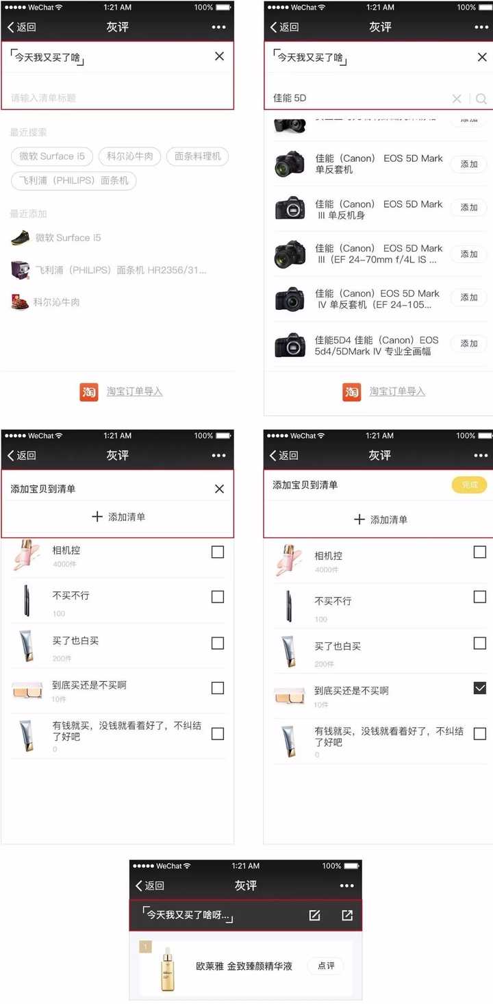 - 查看/添加清单——查看自己已经列出的商品清单或者新建清单