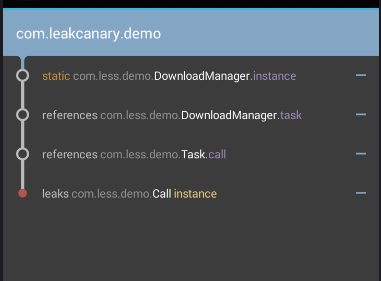 * leaks com.less.demo.Call instance