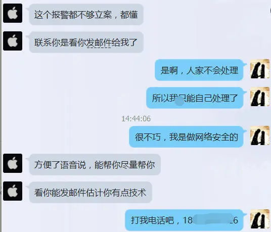 于是,在较量之下,沟通了一下午,骗子终于妥协,答应将手机送回来了。