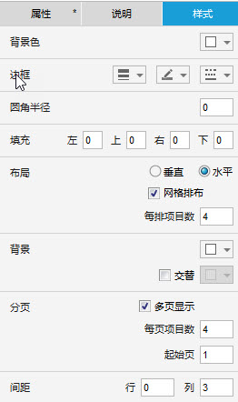 设置分页,本案例中设置如下;设置好布局以后,勾选分页显示选项,设置每页项目数和起始页;