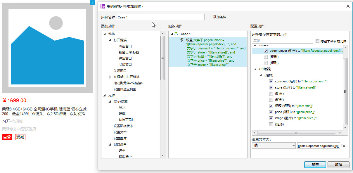 - 设计中继器布局,填充数据;能用图片说明白的事情,就不用码字啰嗦了。如下图: