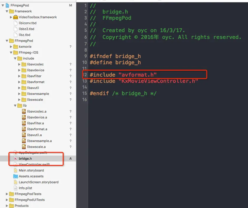 #include "avformat.h"; - swift 工程创建桥接头文件,在头文件内添加