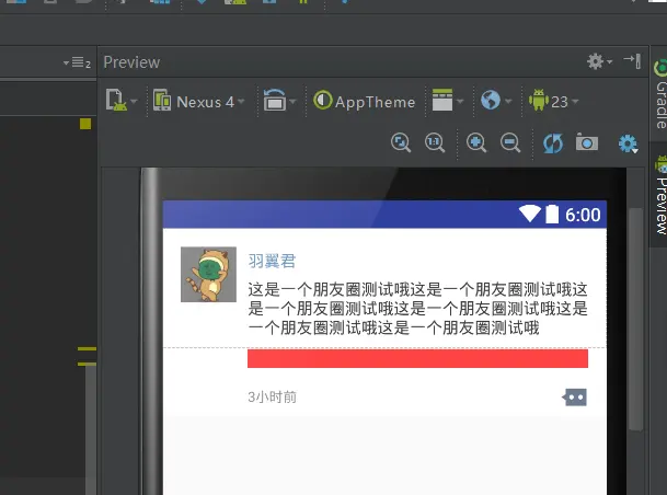 不过值得注意的是,如果心情文字为空,红色那部分的布局的marginTop应设置成负值,因为朋友圈是布局是可以顶上去的。