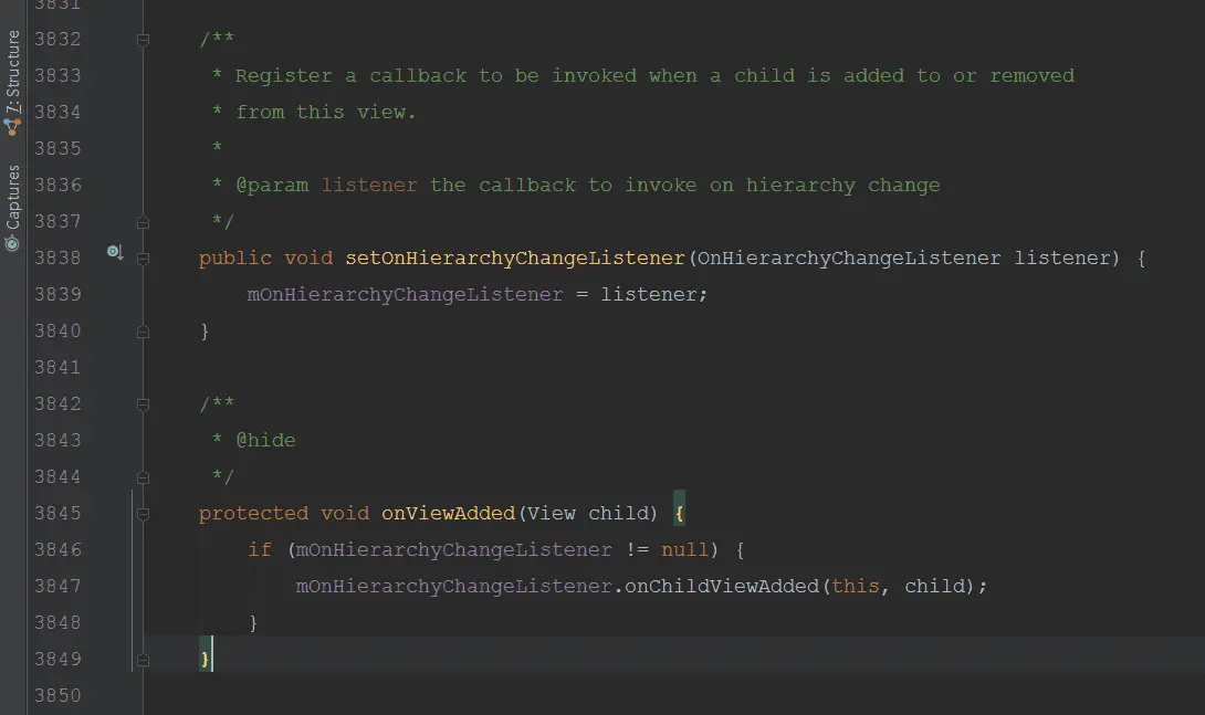 根据文档,可以知道这个接口在ViewGroup层次改变的时候会回调,回调两个方法:onChildViewAdded和onChildViewRemoved,这两个方法正是与addView和removeView挂钩。